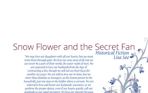 Lisa See illustrates the novel with evocative references to. So when I saw an early screening of the new film Snow Flower and the Secret Fan I was deeply moved by the passionate way it evokes the power of female friendship. The focal story of the kinship between Snow Blossom and Lily is confined inside the setting of Lily as an elderly person directing her story to her grandsons significant other Peony.